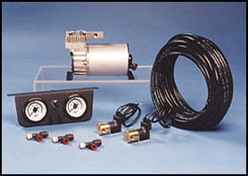 Each kit is complete with a 12-volt compressor, gauge dash panel with inflate and deflate controls, all electrical connections, air lines, fittings, and a detailed, illustrated installation manual.
